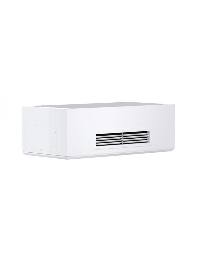 Telepítés • A készüléket mennyezeti beépítésre tervezték és álmennyezetbe is beépíthető. A készülék a mennyezet különböző helyeire szerelhető. Az áramlási irányhoz állítható bevezetettlevegő-rács a készülék elején helyezkedik el. Az elszívott levegő beszívása a jobb oldali keskeny oldalon lévő rácson keresztül történik.