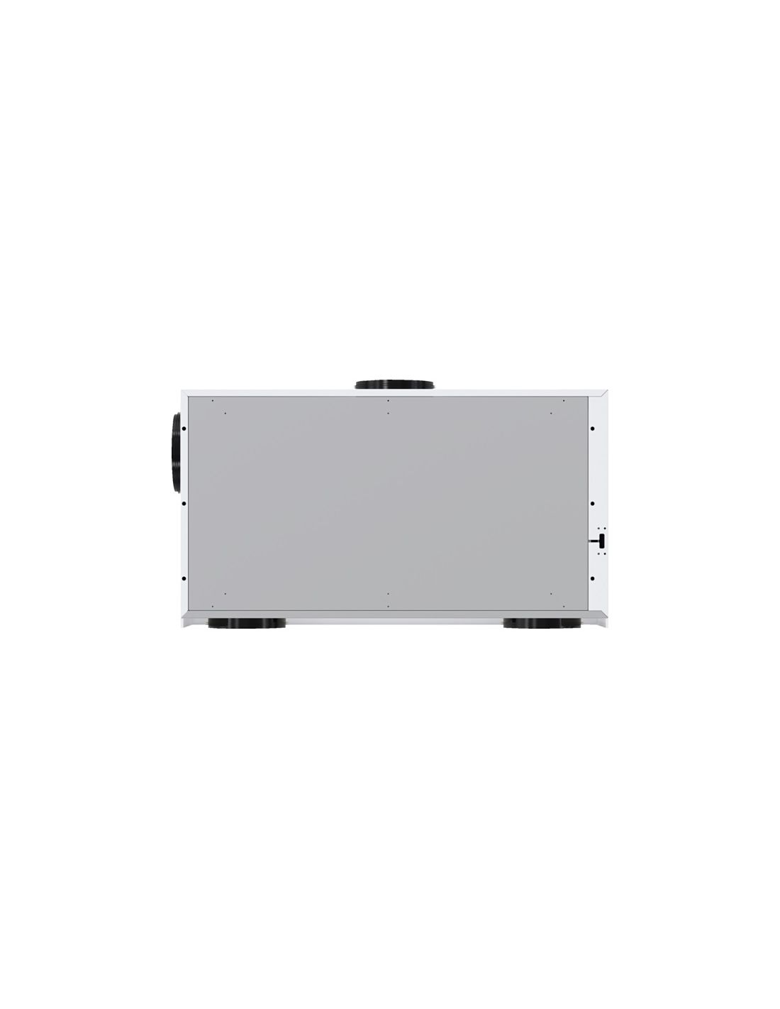Telepítés • A készüléket mennyezeti beépítésre tervezték és álmennyezetbe is beépíthető. A készülék a mennyezet különböző helyeire szerelhető. A bevezetett levegő vezetékeihez szükséges csőcsonkok a készülék elülső oldalán találhatók. Az elszívott levegő vezetése a jobb oldali keskeny részen található elszívottlevegő-csonkon keresztül történik.