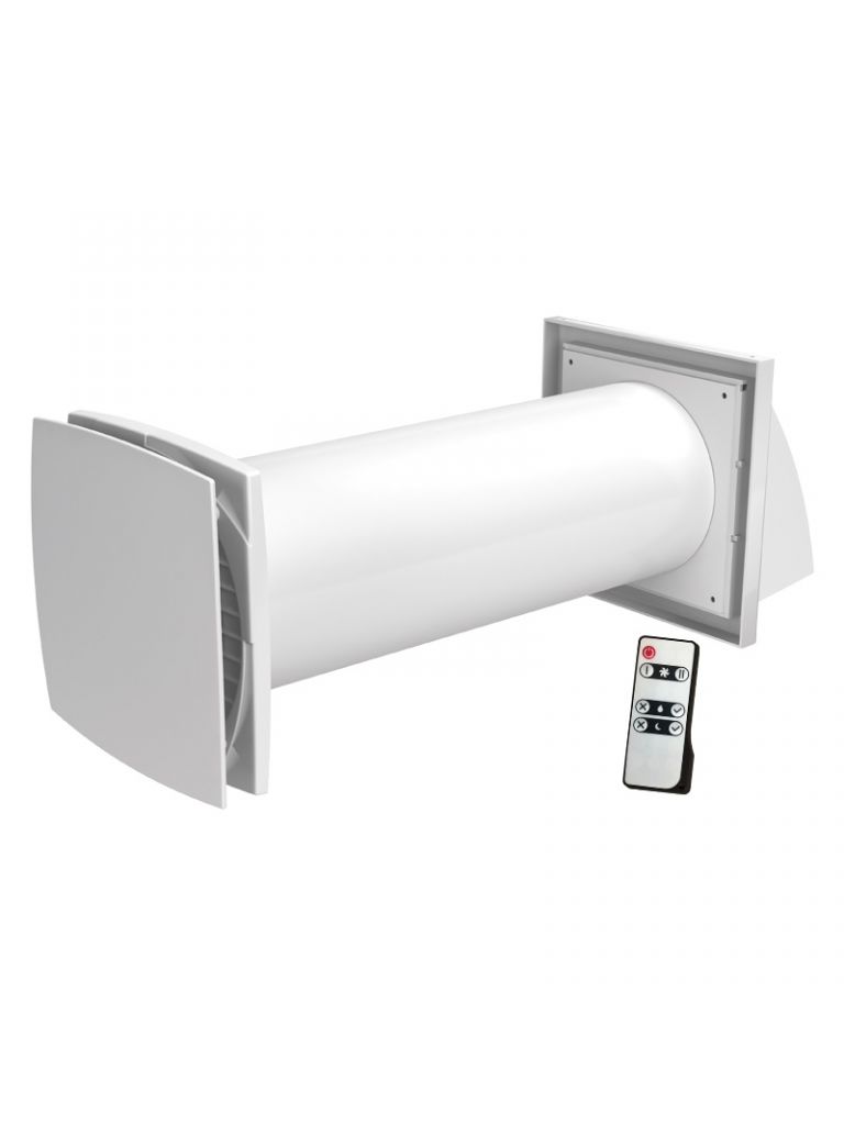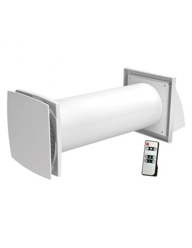 Egyhelyiséges egycsöves hővisszanyerős légkezelő berendezés. Kétfokozatú motorral (25 m3/h és 50 m3/h). Zárt helyiségek hatékony szellőztetéséhez. Beépített G3 szűrővel és EC motorral szerelve. 70 mp-es befúvás és elszívás ciklusváltás, ezért párban ajánljuk, így folyamatos légcsere megy végbe a helyiségben. Tartozék távirányítóval.