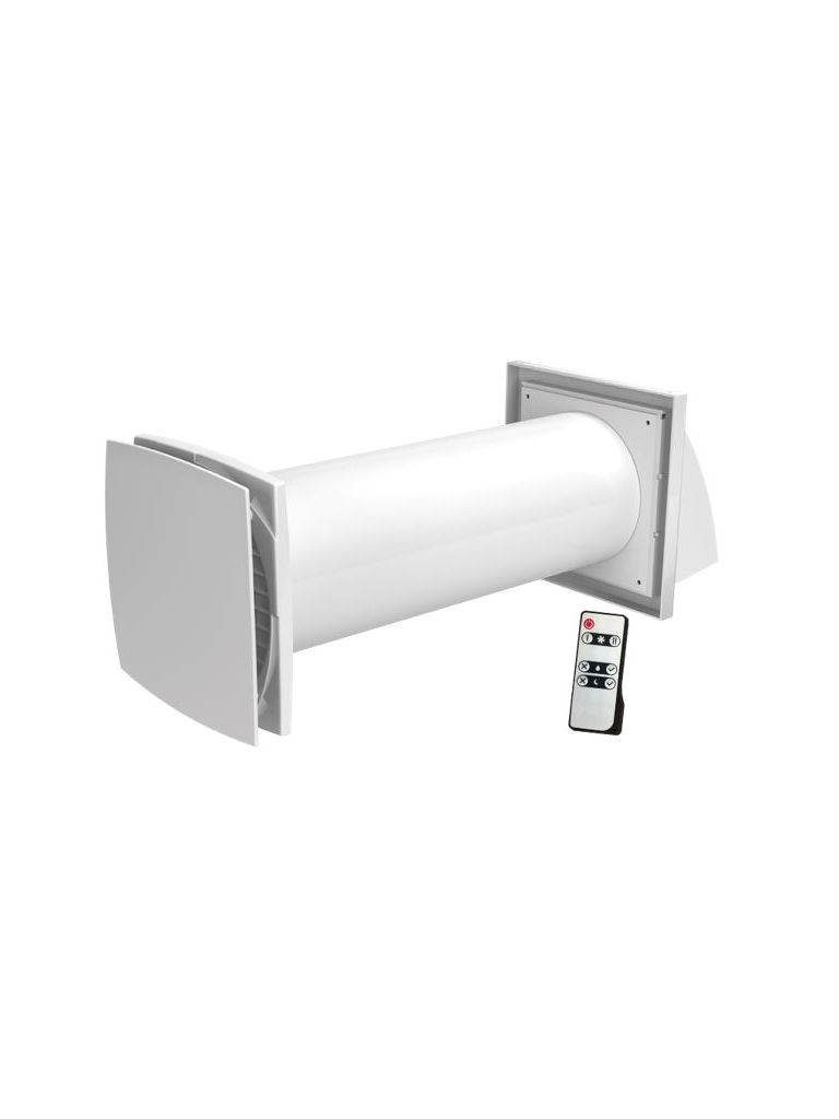 Egyhelyiséges egycsöves hővisszanyerős légkezelő berendezés. Kétfokozatú motorral (30 m3/h és 46 m3/h). Zárt helyiségek hatékony szellőztetéséhez. Beépített G3 szűrővel és EC motorral szerelve. 70 mp-es befúvás és elszívás ciklusváltás, ezért párban ajánljuk, így folyamatos légcsere megy végbe a helyiségben. Tartozék távirányítóval.
