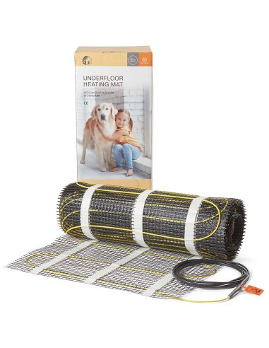 9 m2 beltéri fűtéshez használható fűtőszőnyeg nagyon vékony kéteres fűtőkábellel szerelve. A fűtőkábel csupán 3,5 mm vastagságú. A fűtőszőnyeg kétoldalú ragasztószalaggal rögzíthető az aljzathoz. A fűtőszőnyeget az aljzatbetonra kell helyezni és burkolás előtt önterülő aljzatkiegyenlítőbe vagy csemperagasztóba ágyazni.