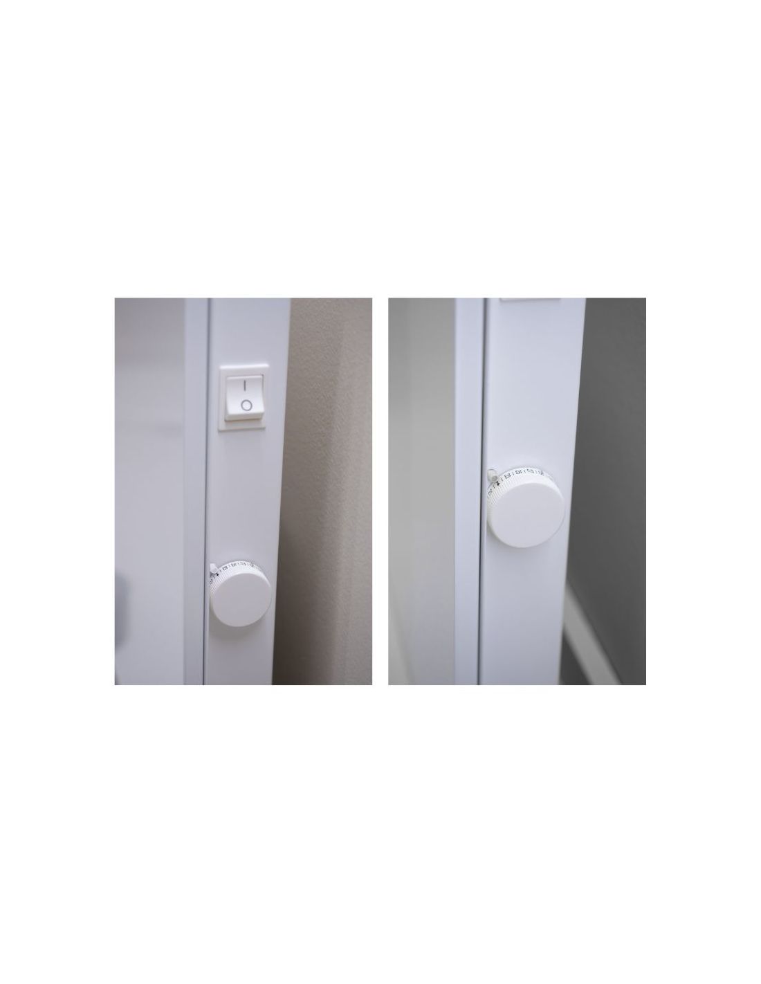 A panel oldalán található a főkapcsoló és egy tekerőgomb. A főkapcsoló bekapcsolása után a tekerő segítségével tudja a kívánt hőmérsékletet beállítani. A beüzemeléssel és beállítással kapcsolatban nincs is más dolga. A fűtőpanel folyamatosan ki-be kapcsolgatva pontosan tartja a kívánt és beállított hőmérsékletet.