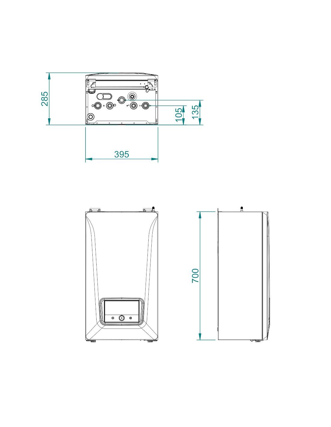 - 700 × 395 × 285 mm