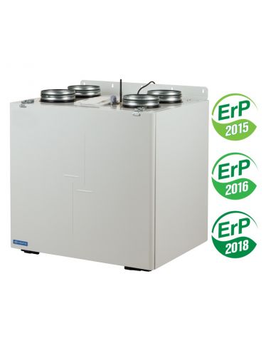 Hővisszanyerős légkezelő berendezés az energiahatékony szellőztetés kialakításához lakásokban, családi házakban, irodákban és egyéb helyiségekben. Hő és akár páravisszanyeréssel csökkenthetjük az energiafelhasználást és növelhetjük a komfortot a belső terekben. Vezérléssel testreszabható és igény szerint szabályozható a szellőzés az épületben. Légkezelő berendezés álló vagy oldalfali beépítés, EC motor, vertikális 160 mm-es csonkokkal, keresztáramú hővisszanyerővel, beépített automata bypassal, heti program lehetőséggel, mobil telefonos applikációval és távoli elérési lehetőséggel. 350 m3/h 150 Pa teljesítménnyel, opcionális kiegészítő A22, A22 wifi vagy A25 kezelőfelület. Elő és utófűtő vezérlési lehetőséggel.