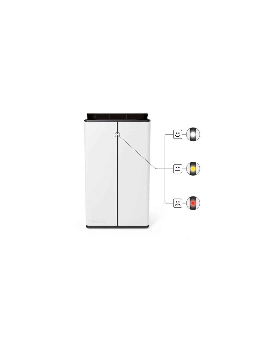 A beépített részecskeérzékelő folyamatosan méri a levegő minőségét. A levegőminőség-jelző a levegőben mért részecskék számától függően fehér (jó levegőminőség), sárga (átlagos levegőminőség) és piros (rossz levegőminőség) között változik.