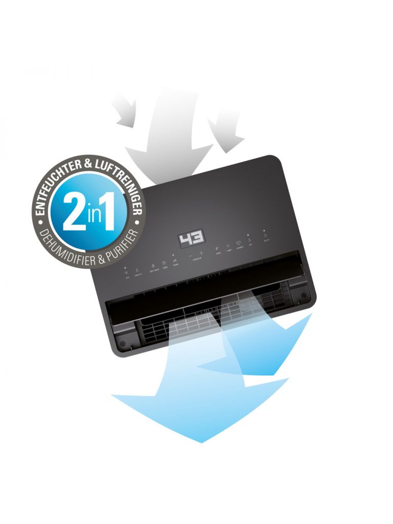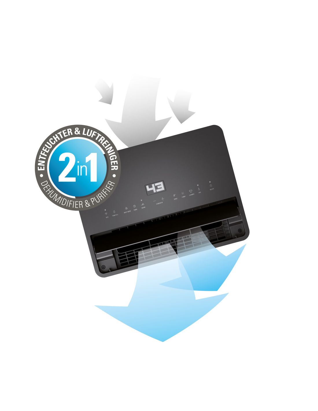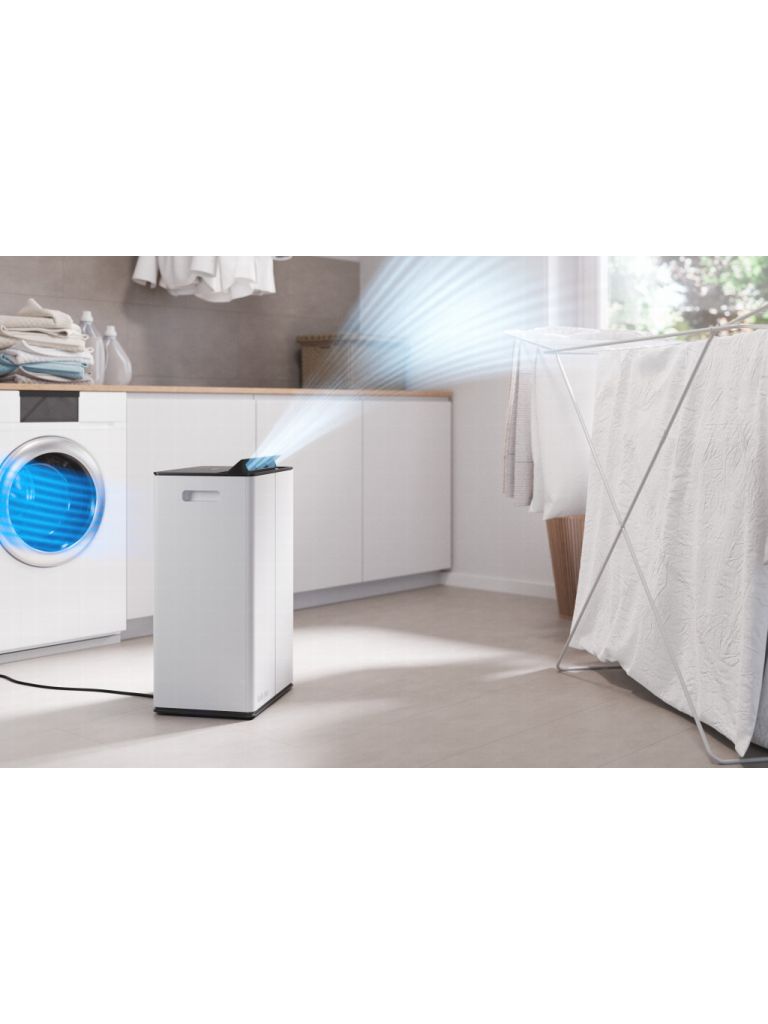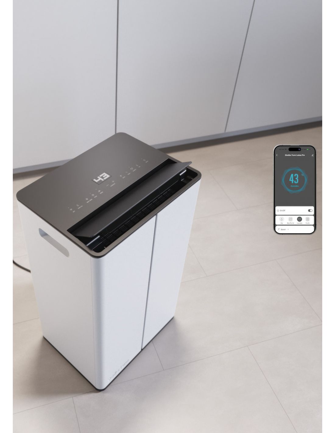 A Lukas Pro professzionális szupererővel rendelkező 2 az 1-ben készülékként egyszerre párátlanítja és tisztítja a levegőt, jó közérzetű beltéri klímát teremtve. A Wi-Fi-nek köszönhetően könnyedén vezérelhető - bármikor és bárhonnan. A külön aktiválható hintafunkció optimálisan osztja el a levegőt a helyiségben. A mosásszárító üzemmód pillanatok alatt megszárítja a nedves ruhákat. Az akár napi 50 literes párátlanítási kapacitással a Lukas Pro ideális nagy helyiségekbe. A HEPA-szűrő megbízhatóan távolítja el a szennyező anyagokat, mint például a baktériumokat, polleneket, port és egyebeket - a Lukas Pro ezért légtisztítóként is lenyűgöző, és higiénikus szobai levegőt biztosít. A párátlanítási üzemmód igény szerint aktiválható vagy deaktiválható. Éjszakai üzemmódban a Lukas Pro különösen halkan és feltűnésmentesen működik. A Lukas Pro-t olyan funkciók teszik teljessé, mint a digitális higrosztát, az időzítő, az automatikus kikapcsolás, amikor a víztartály megtelt, valamint a vízelvezetési lehetőség - víztartályon vagy lefolyócsövön keresztül.
