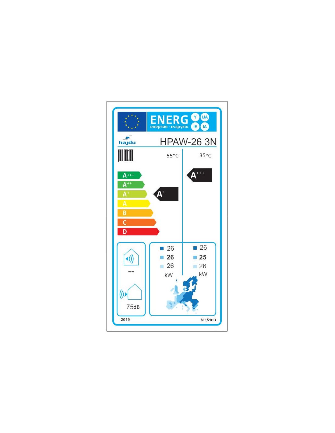 | Előremenő 55 oC-on | osztály | A++ | A+ | ||||