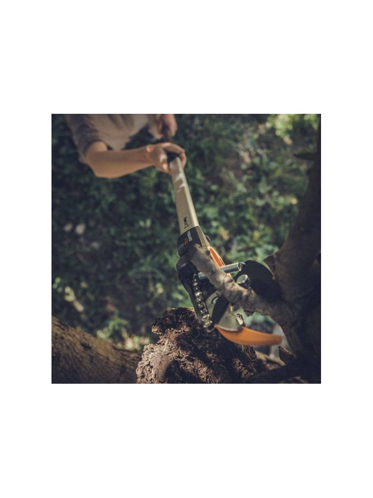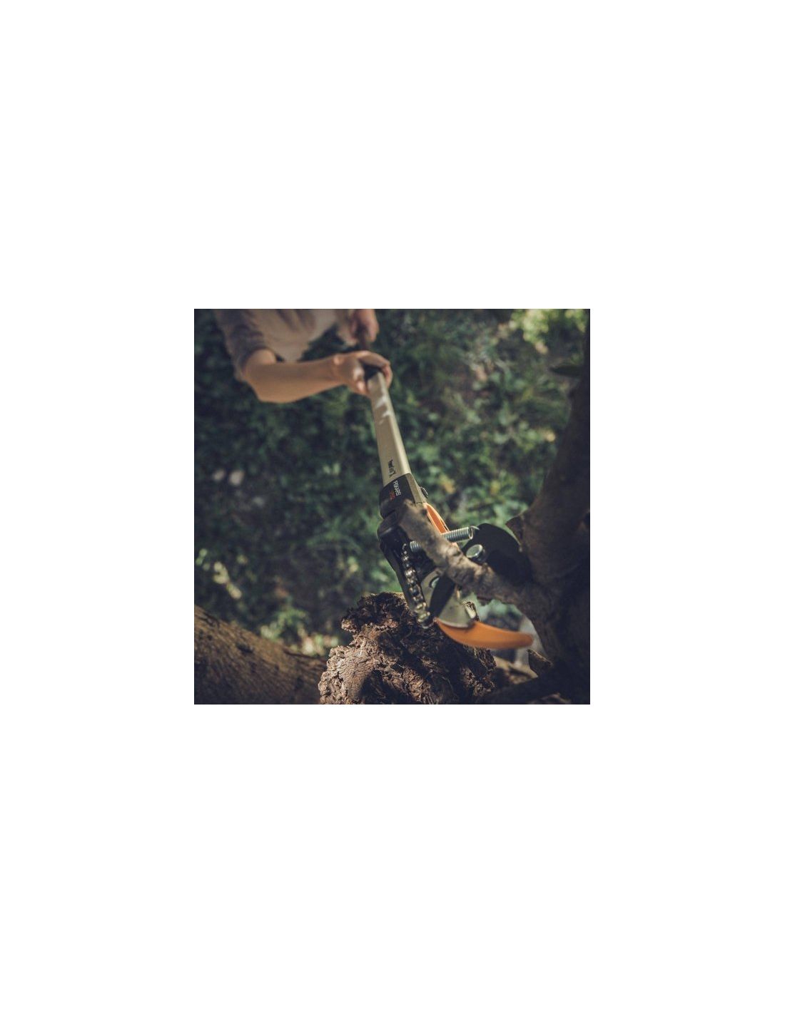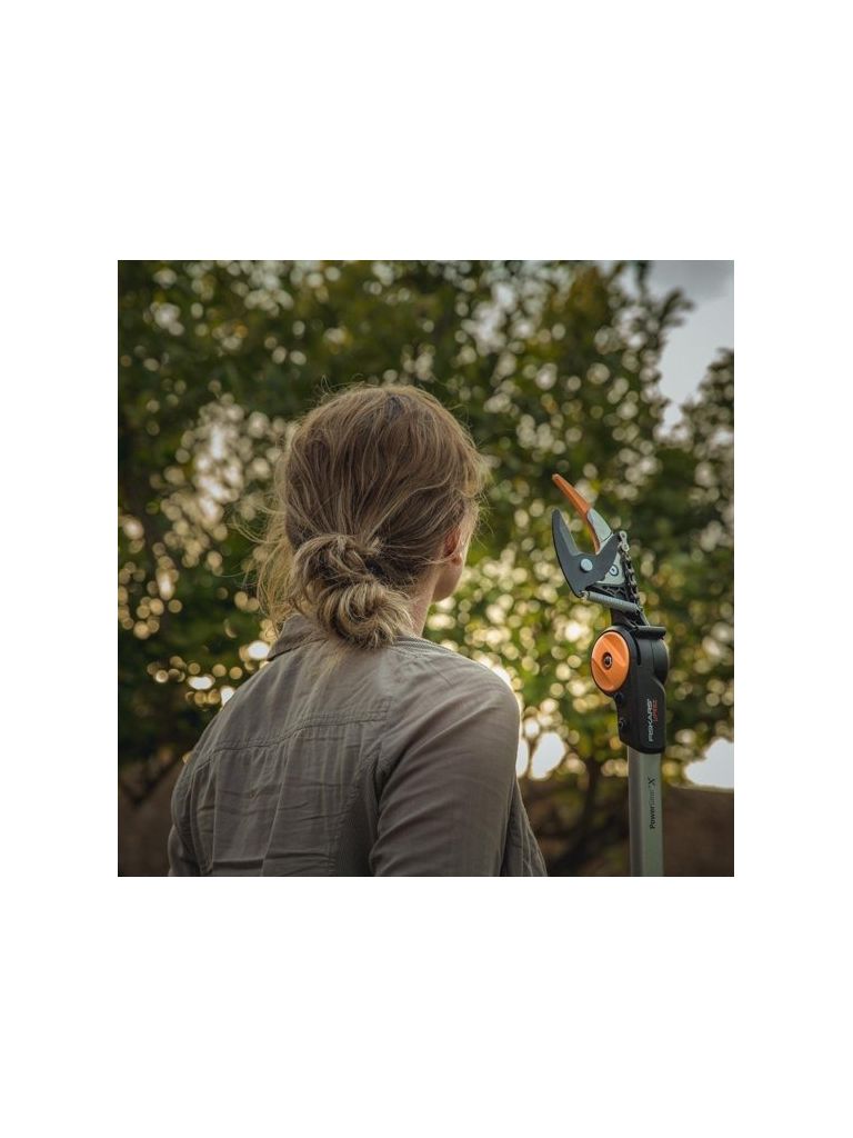 A Fiskars PowerGear™ X Tree Pruner (UPX82) zseniális, teljesítménynövelő mechanizmussal rendelkezik, képes akár Ø 32 mm átmérőjű friss fa vágására, 3,5 méteres kinyúlással. Tapasztalja meg a könnyebb vágásokat a PowerGear™ X technológiával, amely könnyed és pontos metszést tesz lehetővé létra, hajolgatás vagy megerőltetés nélkül. A PowerGear X™ favágók narancssárga vágástámasztékkal rendelkeznek a jobb láthatóság érdekében és 230°-ig állítható vágási szöget biztosítanak. A tartós, kiváló minőségű acél pengék súrlódáscsökkentő PTFE-bevonattal rendelkeznek, amely hosszabb ideig tart, még erős igénybevétel mellett is. A tengely könnyű, időjárásálló alumíniumból készült, ergonomikus SoftGrip™ fogantyúval a kényelem, az irányítás és a csúszásmentes tartás érdekében. Cserefogantyú és kötélkészlet vagy vágófej igény szerint elérhető. Fedezzen fel további kompatibilis alkatrészeket, például a többfunkciós ágfűrészt és a gyümölcsszedőt.