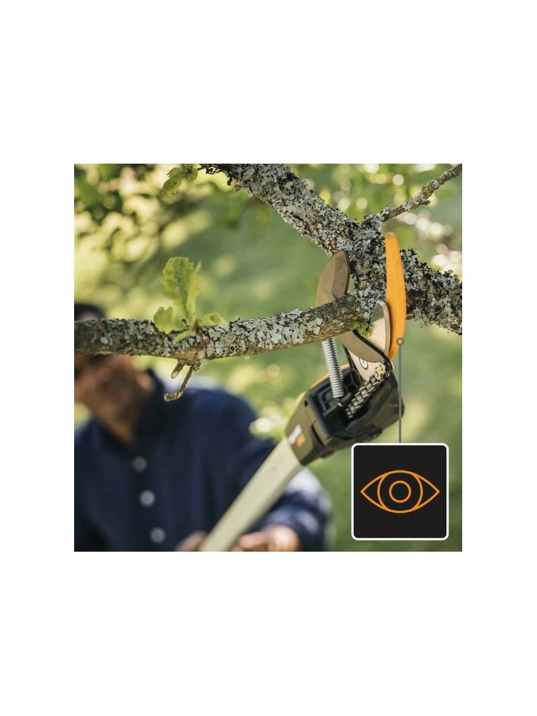 A teljesen edzett, precíziósan köszörült penge éles marad a súrlódást csökkentő PTFE bevonattal Megnövelt hatótávolság friss fa vágásához Ø 32 mm-ig.