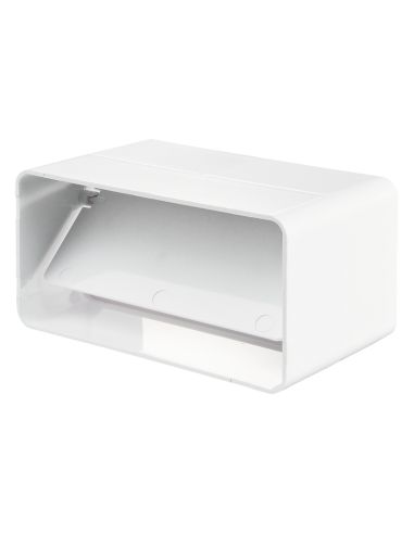 Fehér PVC-ből készült, befúváshoz és elszíváshoz használt légtechnikai elem. Műanyag négyszög toldó idom visszacsapószeleppel, 55*110 mm négyszög légcsatornához.