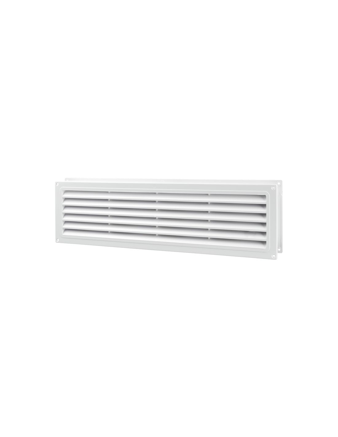Műanyag takaróelem lakossági, közületi vagy ipari szellőzőrendszerek be- és elszívónyílásainak lezárására. Fehér szín, négyszögletes kialakítás. Csőcsatlakozás nélkül. 462x124 mm. Párban csomagolva.