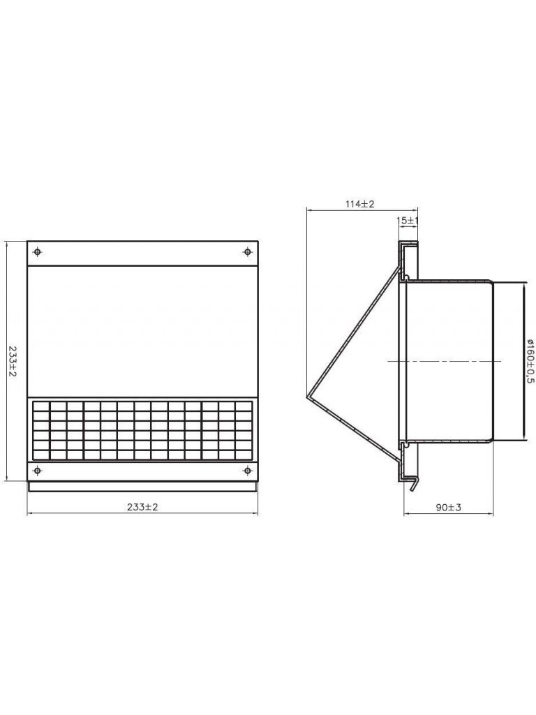 Ubbink CWL DN160 oldalfali légbeszívó/-kifúvó elem, fekete színben