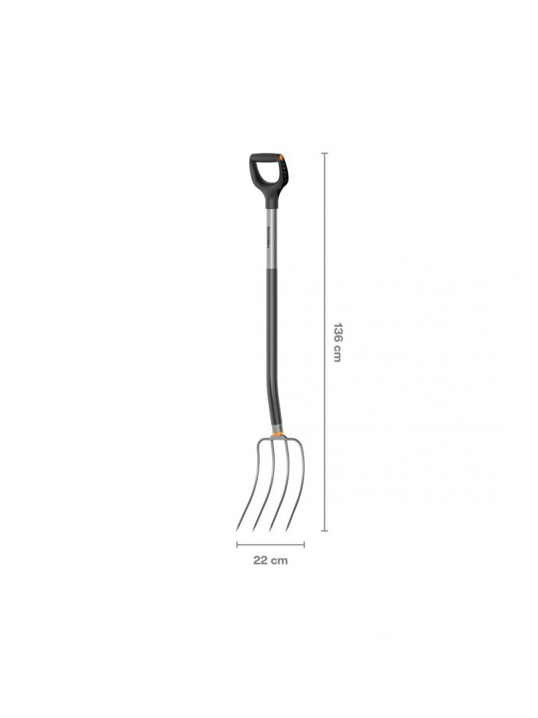 Laza anyagok például fű, szalma, gyomok, levelek, komposzt és kerti hulladék mozgatásához, forgatásához és eloszlatásához egyaránt használható. Hajlított nyelének és markolatának köszönhetően kisebb a hát és a csukló terhelése. Műanyag borítású nyele segíti a megfelelő fogást és növeli a kényelemérzetet. Szilárdságát a bóracél anyag biztosítja.