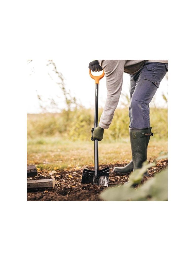A Fiskars Solid™ szerszámok hatékonyak, könnyen használhatók és megfizethető minőségűek. Az XL pengével + hosszú nyéllel ellátott Solid+™ ásó ideális sziklában, agyagban és kemény talajban való ásáshoz. A D-alakú fogantyú minden kézmérethez illeszkedik, kesztyűvel vagy anélkül. A lekerekített acél fogantyú, valamint a penge és a nyél közötti hegesztett kapcsolat további tartósságot biztosít. A hosszú fogantyú műanyag bevonatú hüvelyrel van felszerelve a nagyobb kényelem érdekében, az optimalizált dőlésszög pedig lehetővé teszi a magasabb felhasználók számára, hogy ergonomikusan dolgozzanak. A bóracél szerkezet növeli a szilárdságot, és megkönnyíti és gyorsabbá teszi a talajba való behajtást.