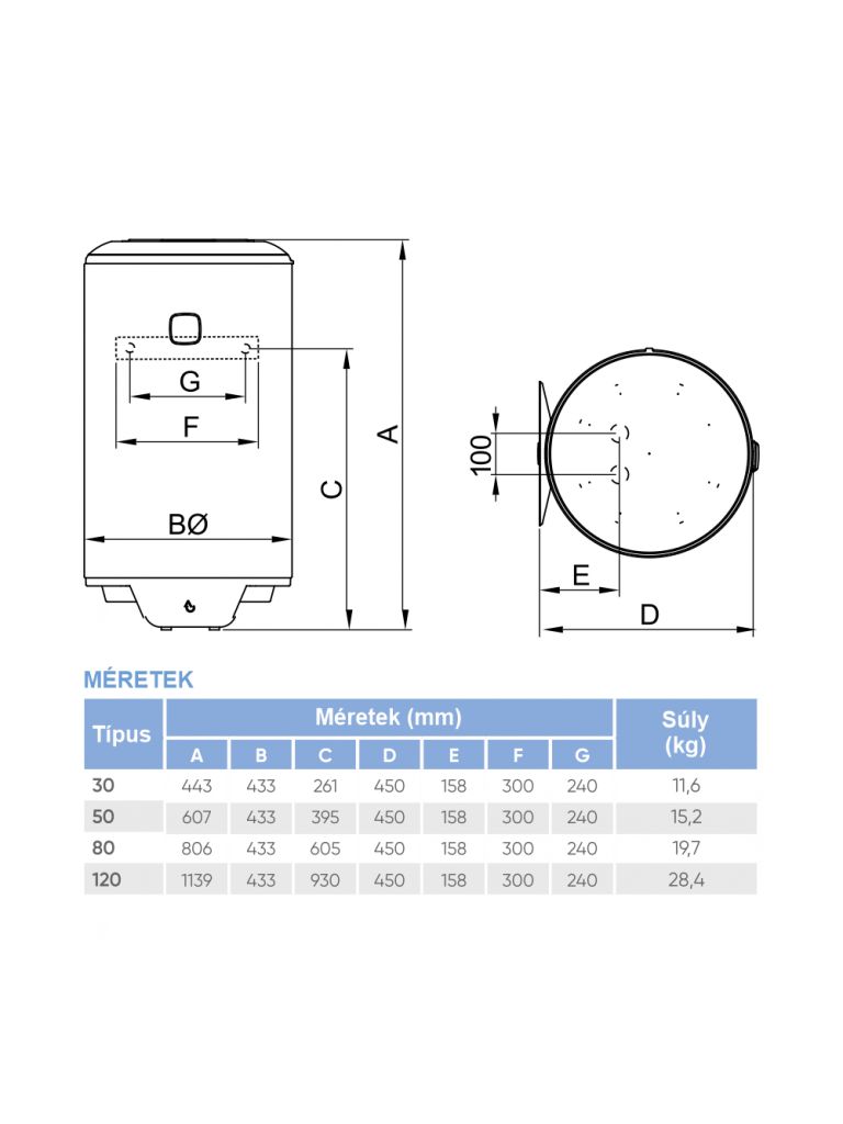 A Gépész Holding boltjaiban és webáruházában az O'PRO+ energiatakarékos villanybojler függőleges elhelyezésű kivitelben kapható: 30, 50, 80 és 120 literes kapacitással, függőleges . Bármilyen térbe tökéletesen illeszkedik, miközben minden igényt kielégítő mennyiségű meleg vizet biztosít. (*modelltől függően)