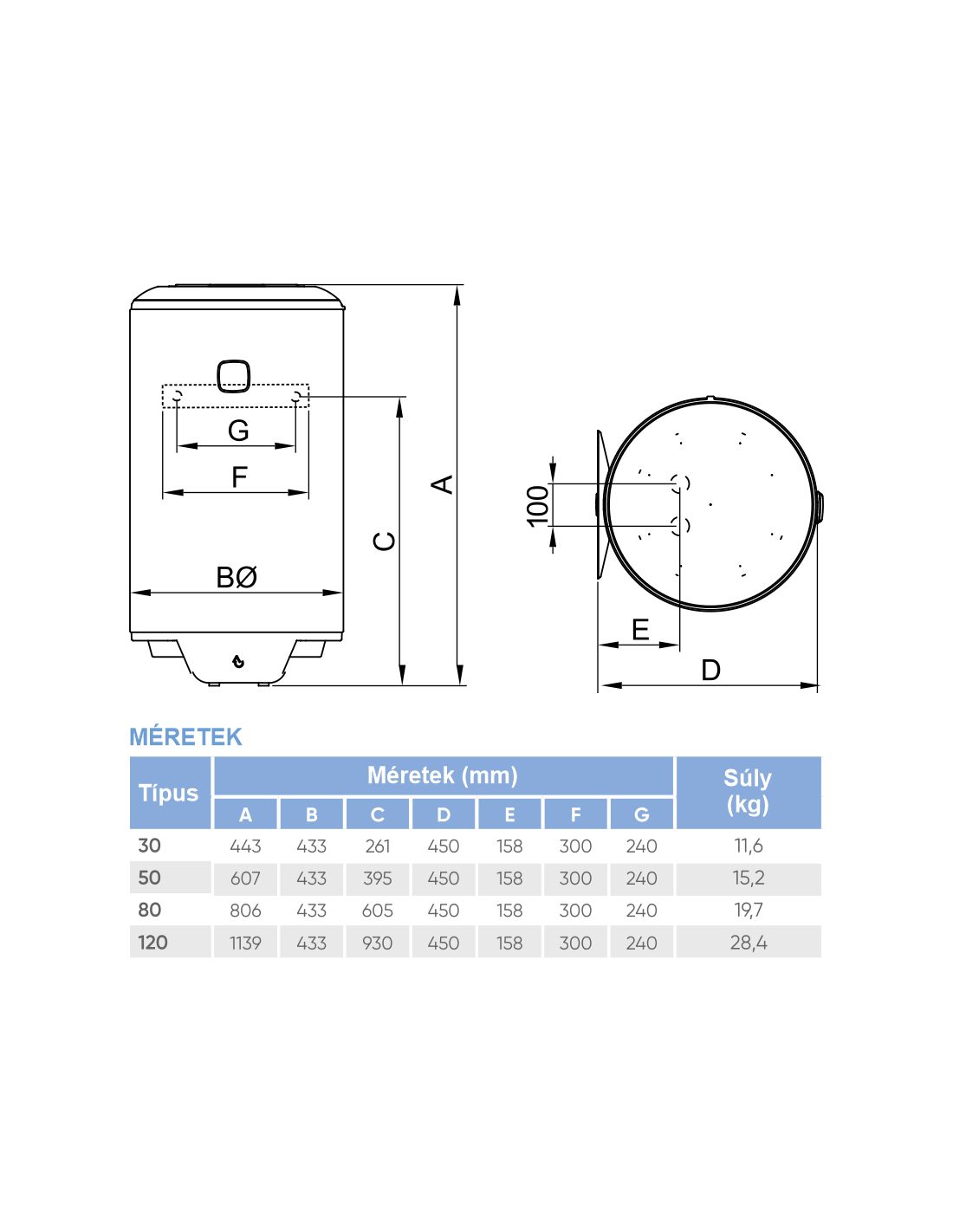 A Gépész Holding boltjaiban és webáruházában az O'PRO+ energiatakarékos villanybojler függőleges elhelyezésű kivitelben kapható: 30, 50, 80 és 120 literes kapacitással, függőleges . Bármilyen térbe tökéletesen illeszkedik, miközben minden igényt kielégítő mennyiségű meleg vizet biztosít. (*modelltől függően)