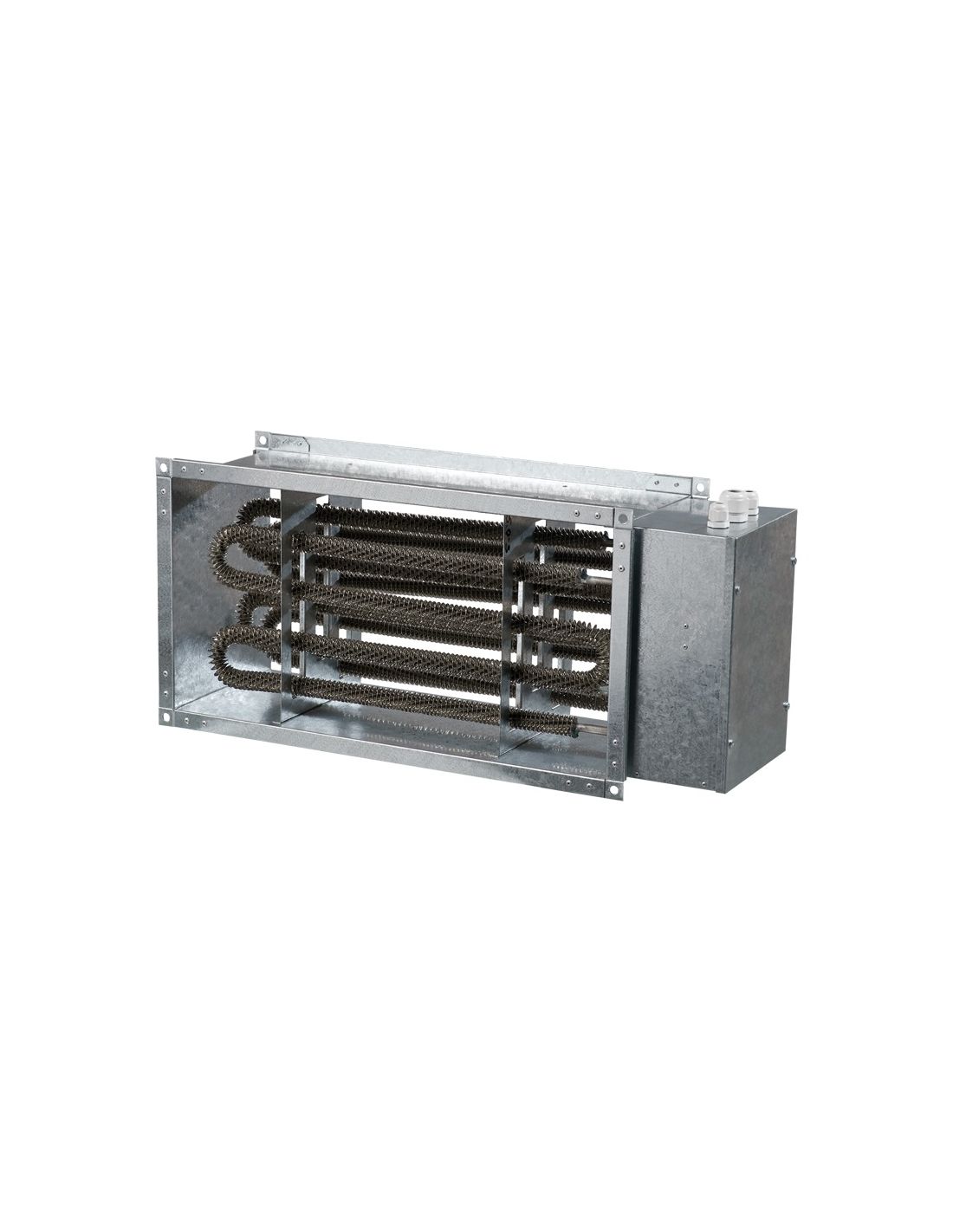 Elektromos fűtőkalorifer, különféle szabályzási módokkal és rendszerekhez. A fűtőkalorifereket abban az esetben szükséges használni, ha a befújni kívánt levegő hőmérséklete egyébként nem éri el a tervezéskor kitűzött, vagy a benti igények szerinti komfort szintet. A megfelelő méret kiválasztása mellett, melyet a légmennyiség és a rendszer méretei határoznak meg, szükséges figyelembe venni, milyen kiegészítőket érdemes a precíz szabályozáshoz beépíteni. Integrált hőmérséklet szabályozóval. Horganyzott acélból készült ház és csatlakozódoboz. Rozsdamentes acélból készült fűtőelemek. Gumitömítéssel ellátva.