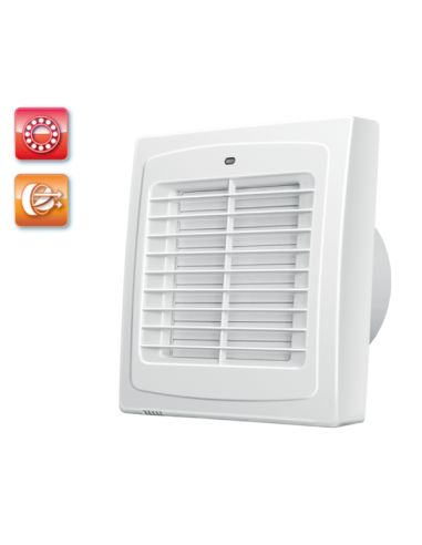 UV-álló ABS műanyagból készült, fürdőszoba, zuhanyzó, konyha és egyéb használati helyiség folyamatos vagy időszakos elszívására. Automata zsalus háztartási ventilátor, 125 mm légcsatornához. Golyóscsapágyas kivitel.