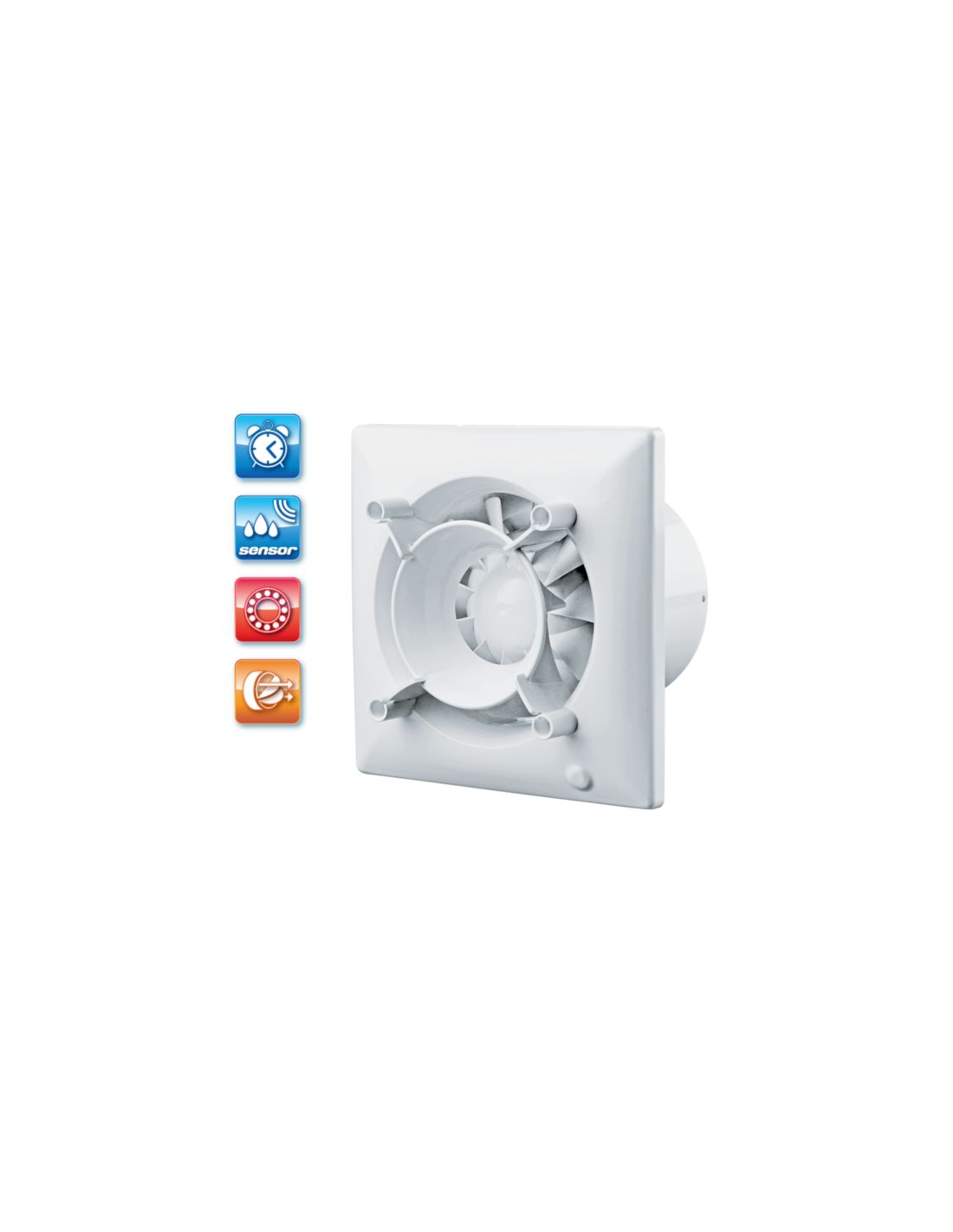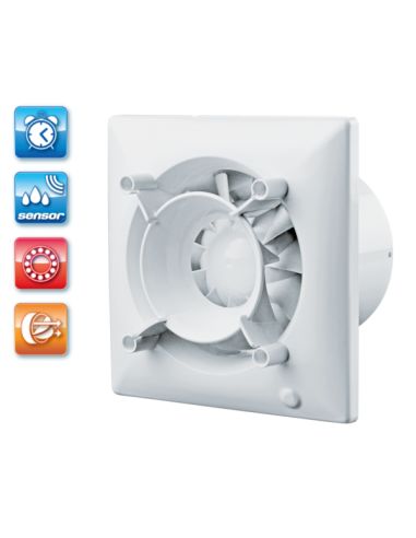 UV-álló ABS műanyagból készült, fürdőszoba, zuhanyzó, konyha és egyéb használati helyiség folyamatos vagy időszakos elszívására. Design Konzept termékcsaládba tartozó háztartási ventilátor, 125 mm légcsatornához, időrelével és páraézékelővel. Design Konzept előlapokkal kompatibilis.