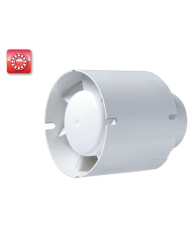 UV-álló ABS műanyagból készült, fürdőszoba, zuhanyzó, konyha és egyéb használati helyiség folyamatos vagy időszakos elszívására. Háztartási csőventilátor, 125 mm légcsatornához. Golyóscsapágyas kivitel.