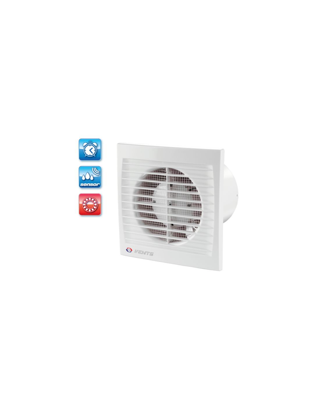 UV-álló ABS műanyagból készült, fürdőszoba, zuhanyzó, konyha és egyéb használati helyiség folyamatos vagy időszakos elszívására. Klasszikus megjelenésű háztartási ventilátor, 100 mm légcsatornához, időrelével és páraézékelővel. Golyóscsapágyas kivitel.