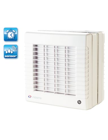 UV-álló ABS műanyagból készült, fürdőszoba, zuhanyzó, konyha és egyéb használati helyiség folyamatos vagy időszakos elszívására. Automata zsalus háztartási ventilátor, 125 mm légcsatornához, időrelével és páraézékelővel.