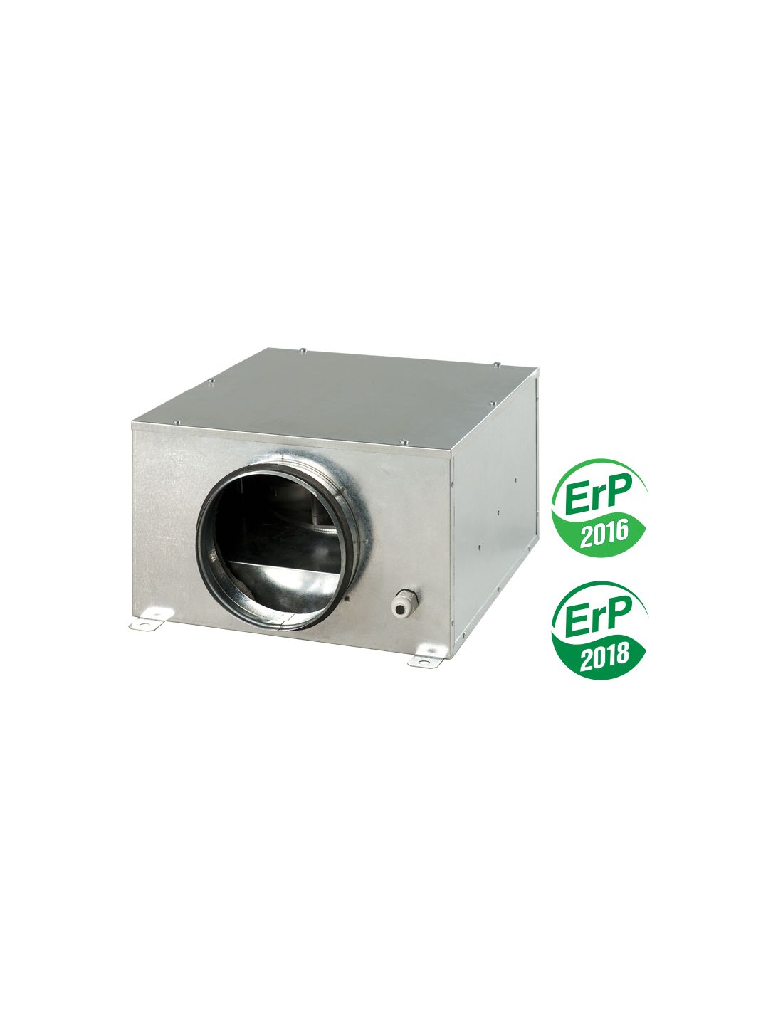 Hő- és hangszigetelt anyaggal bélelt, horganyzott acéllemez burkolatú csőventilátor. A csatlakozó csonkok gumitömítéssel szereltek. Hő és hangszigetelt házas csőventilátor, (max. 55 C°) 150 mm légcsatornához, 730 m3/h, 230 V, 50 Hz, IP X4"