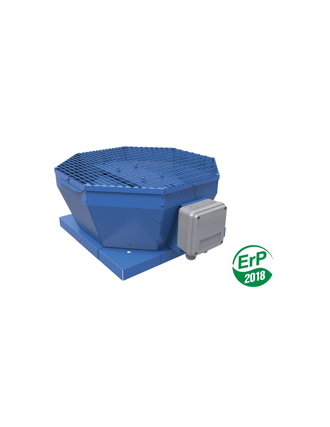 Kereskedelmi, irodai és egyéb közületi vagy ipari helyiség befúvására és elszívására alkalmazható centrifugál tetőventilátor. Kialakításának köszönhetően bármilyen tetőkialakítás esetén telepíthetőek. Polimer bevonatú acélburkolat.Tetőventilátor, vertikális kivezetéssel, 220 mm névleges méretben, 880 m3/h, 230 V, 50 Hz, IP X4
