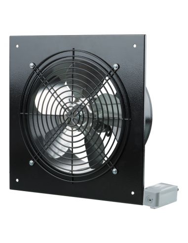 Befúvó vagy elszívó ventilátorok olyan helyiségekhez, ahol nagy légáramlás szükséges viszonylag alacsony ellenállás mellett. Kültéri falra szerelhető. Fém házas kisnyomású axiálventilátor, külső kötődobozzal, 250 mm néveleges méretben, 1070 m3/h, 230 V, 50 Hz, IP X4