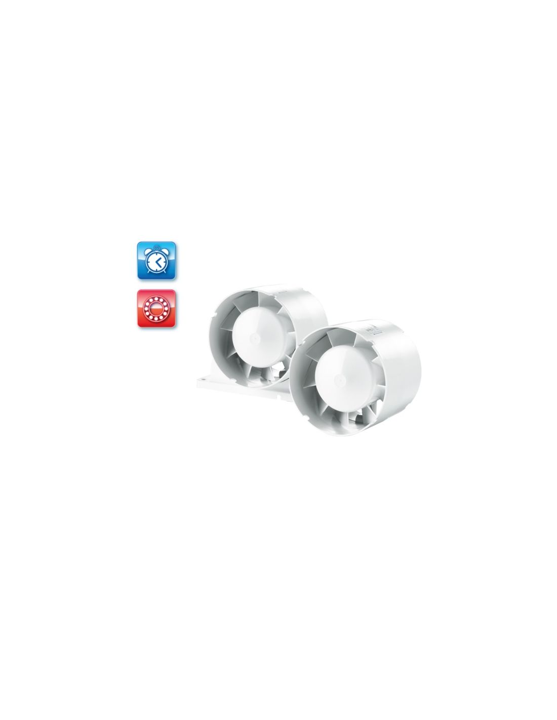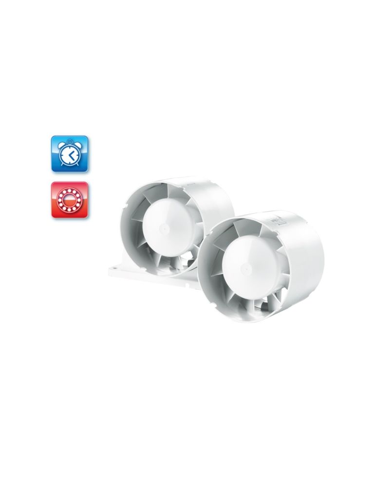 UV-álló ABS műanyagból készült, fürdőszoba, zuhanyzó, konyha és egyéb használati helyiség folyamatos vagy időszakos elszívására. Háztartási csőventilátor, 125 mm légcsatornához, időrelével. Golyóscsapágyas kivitel.