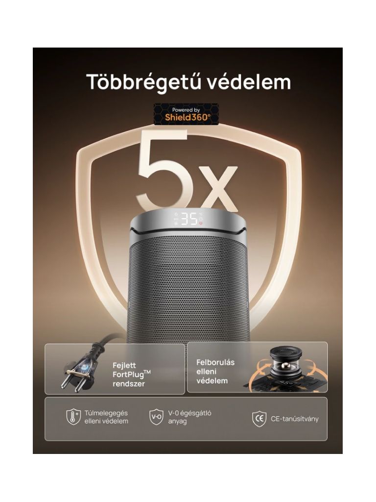 A kefe nélküli DC motor és a speciális ventilátordizájn biztosítja a szinte hangtalan működést: mindössze 37 dB zajszinten élvezheted a meleget és a nyugodt környezetet.