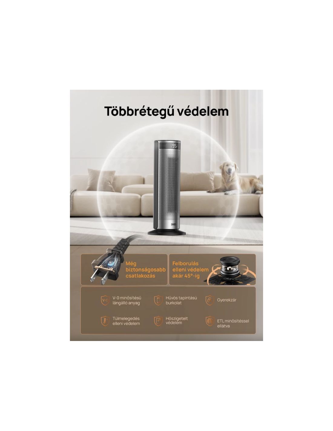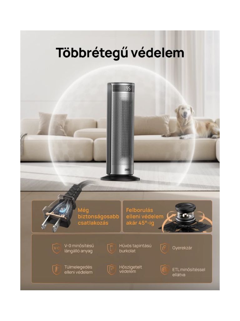 A DREO fűtők 8 biztonsági réteggel rendelkeznek – többek között túlmelegedés- és felborulás elleni védelemmel –, így a használatuk mindig biztonságos és megbízható.